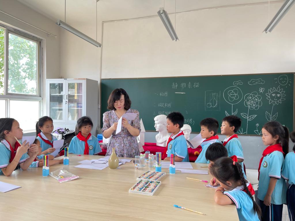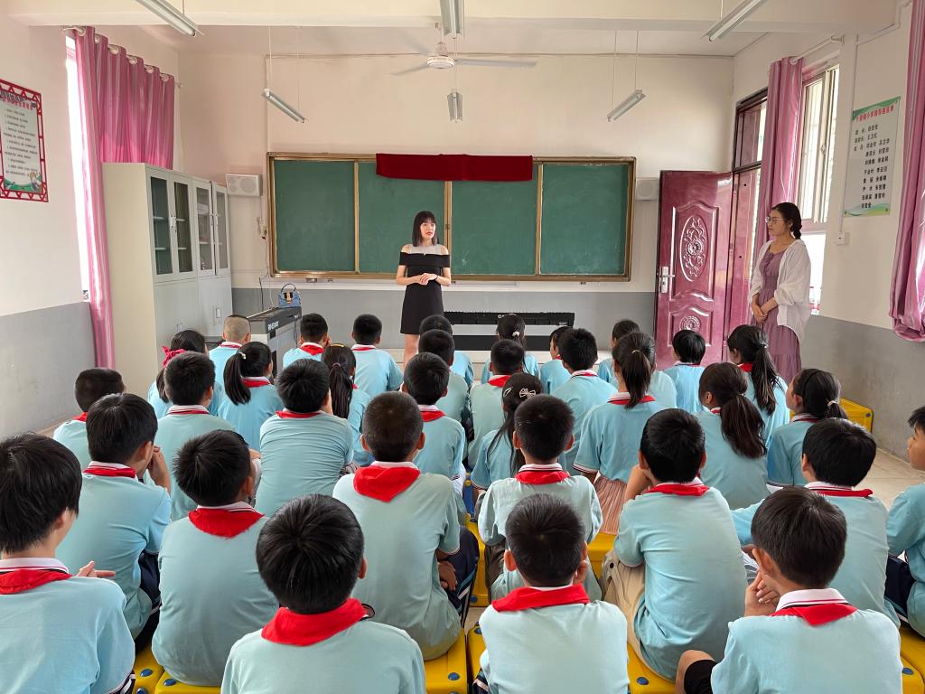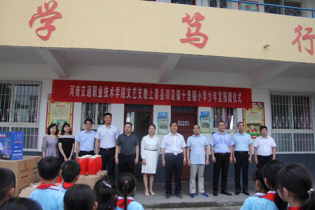 立足教育初心,服务地方发展。作为党史学习教育“我为群众办实事”的计划项目,学校重点策划开展了上蔡县邵店镇十里铺小学少年宫文艺支教志愿服务项目,向少年宫捐赠了一批电子琴和腰鼓等教学乐器,来自文艺体育部的我校教师与少年宫的老师结对提高艺术教育质量,在现场与当地师生共同“上好一门课”,传授音乐和美术知识,陶冶人文素养,受到了师生的欢迎和好评。