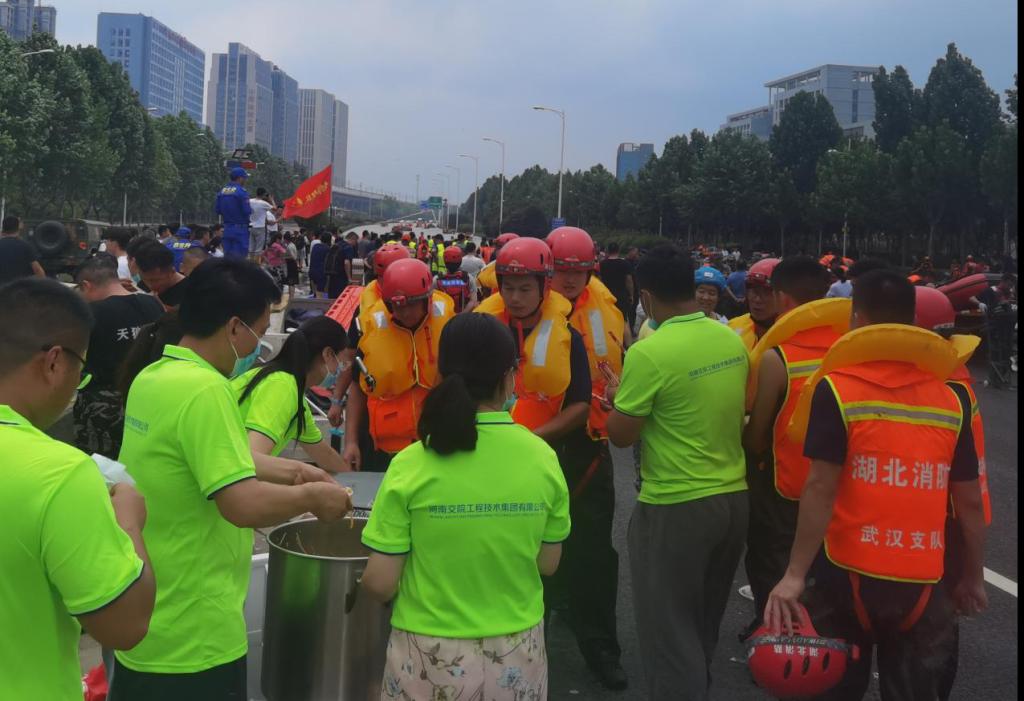 开展志愿服务,抢险救灾显担当。灾情深深牵动着河南交院师生的心,广大师生响应学校党委关于发挥党组织战斗堡垒和党员先锋模范作用做好防汛救灾工作的号召,冲锋在前,担当奉献。学校组织党员开动水罐车为周边停水小区和医院免费送水,缓解了居民用水难题;深夜开放教室和实训基地,为被困滞留的兄弟院校教师和受灾群众提供临时免费休息、住宿、照明等服务;汽车学院党总支发挥专业优势组建汽车救援专业技术服务团队,向周边群众提供技术支持;交院工程集团党总支成立了抢险救援志愿服务队,利用军用移动炊事车和现有的食材,制作面条、烩菜等食物800余份,购买矿泉水3000余瓶,及时送往救灾一线;教师赵攀科组建了230余人的救灾义工亲友志愿团,组织志愿团参加赈灾物资转运点搬运物资、协调运输车辆和人员;后勤集团职工李予青千方百计解决了洪灾给桃园路家属院带来的停电、地下室进水断树挪移等困扰,胡鹏立足岗位克服种种困难,保障了校内用电用水;交通信息工程系学生郑之民主动加入8个救援志愿服务群,核实转发对接各种救援信息,为抢险救灾工作提供可靠信息,并成功救助19名被洪水围困群众,他的事迹被《中国交通报》报道……