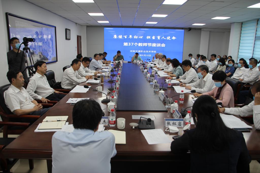 9月10日,学校庆祝第37个教师节座谈会在郑东校区召开。河南省交通运输厅党组书记、厅长徐强带领厅领导、机关处室和厅属企业负责人出席座谈会,向全校教职工致以节日问候和美好祝愿,并对学校改革发展提出要求和希望。厅党组成员、副厅长唐彦民主持座谈会。
