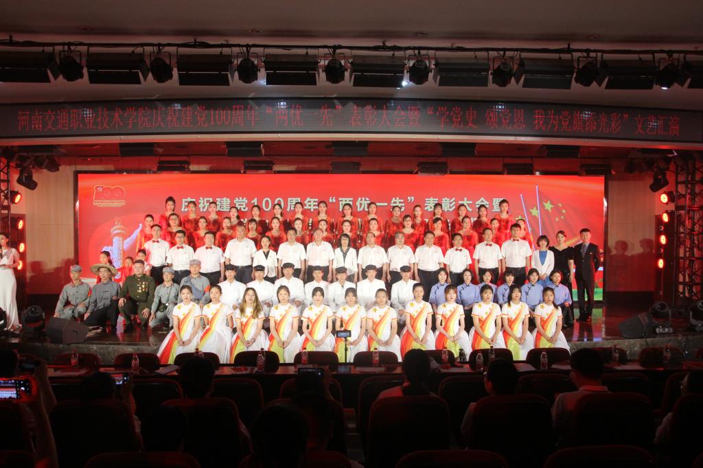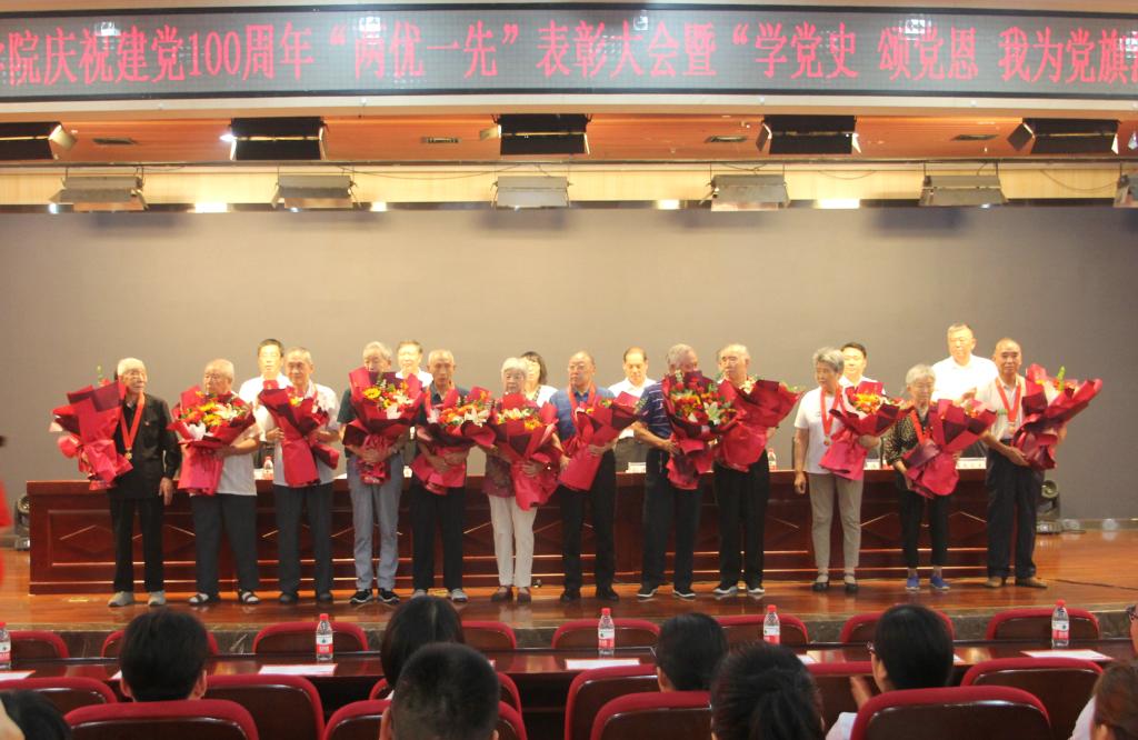在党的百年华诞来临之际,6月30日下午,我校举行庆祝建党100周年“两优一先”表彰大会暨“学党史 颂党恩 我为党旗添光彩”文艺汇演活动。校领导、党龄超50年老党员代表、受表彰全体人员、机关全体人员、各党总支书记、支部书记以及党员、学生代表400余人参加活动。表彰大会由党委副书记孙建立主持。