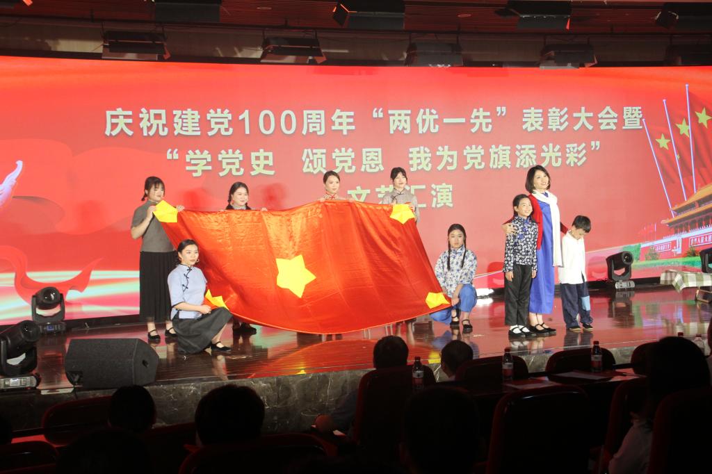 表彰大会结束后,精彩的文艺汇演拉开帷幕。整场文艺汇演分为“回首党史,光辉历程”、“披荆斩棘,龙腾华夏”、“风华正茂,千秋伟业”三个篇章,生动展现了中国共产党百年奋斗历程,展现了在中国共产党领导下,中华民族从站起来、富起来到强起来的伟大飞跃。由刘娟、庞周泉、王云艳等人带来的情景演唱《绣红旗》中,狱友们含着热泪绣红旗,绣出了人民对党的忠诚、绣出了党对人民的热爱,绣出了伟大的祖国!在朗诵《等待》中,表演者张亦刚和王心心老师分别扮演邓稼先和许鹿希,两人进行了一场跨越时空的情景演绎。邓稼先1958年接受研制原子弹的任务,从此,夫妻二人便开始聚少离多的生活。两人分别的28年间,我国第一颗原子弹爆炸成功,第一颗氢弹爆炸成功。两人能够再长久相守时,邓稼先已是因核辐射身患重病的61岁白发老人,留给他们的相聚时间,只有363天。邓稼先为了中国的核事业,鞠躬尽瘁,现场无数观众留下了感动的泪水。