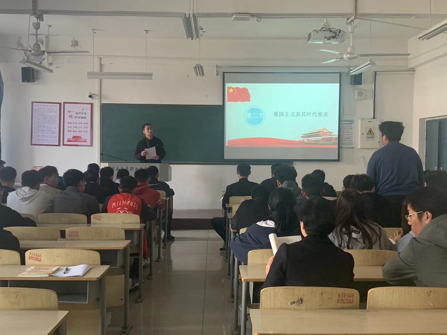 课堂上,万锦祥老师为学生讲授了第三章弘扬中国精神的相关内容,采用提问的方式对爱国主义的内涵进行了讲解。随后,通过对“胡锦涛捡国旗”与不理性的爱国行为两则案例的对比引出爱国主义的时代要求。万锦祥老师运用了丰富的时政案例、贴近学生生活,讲课内容充实,思路清晰,表述准确,互动自然。授课过程中,学生们纪律严格,回应积极。