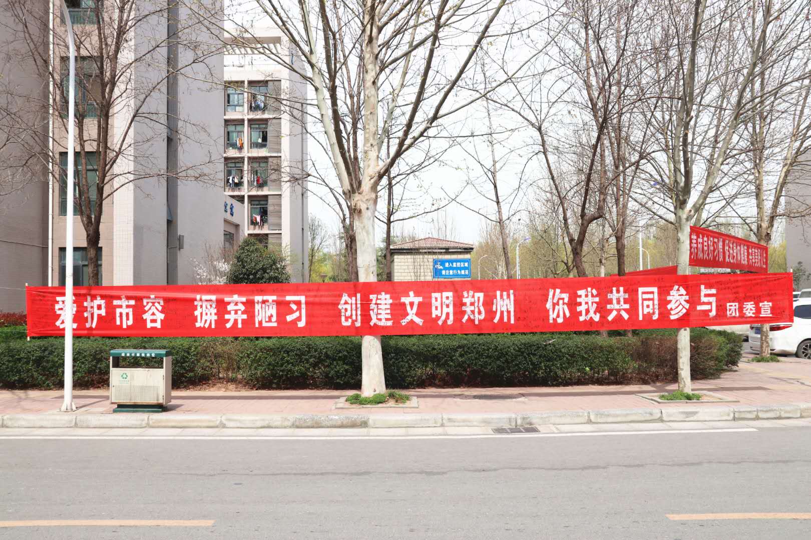 3月22日团委组织开展以“摒弃陋习,文明郑州”为主题的优化市容、争当文明市民宣传教育活动。
