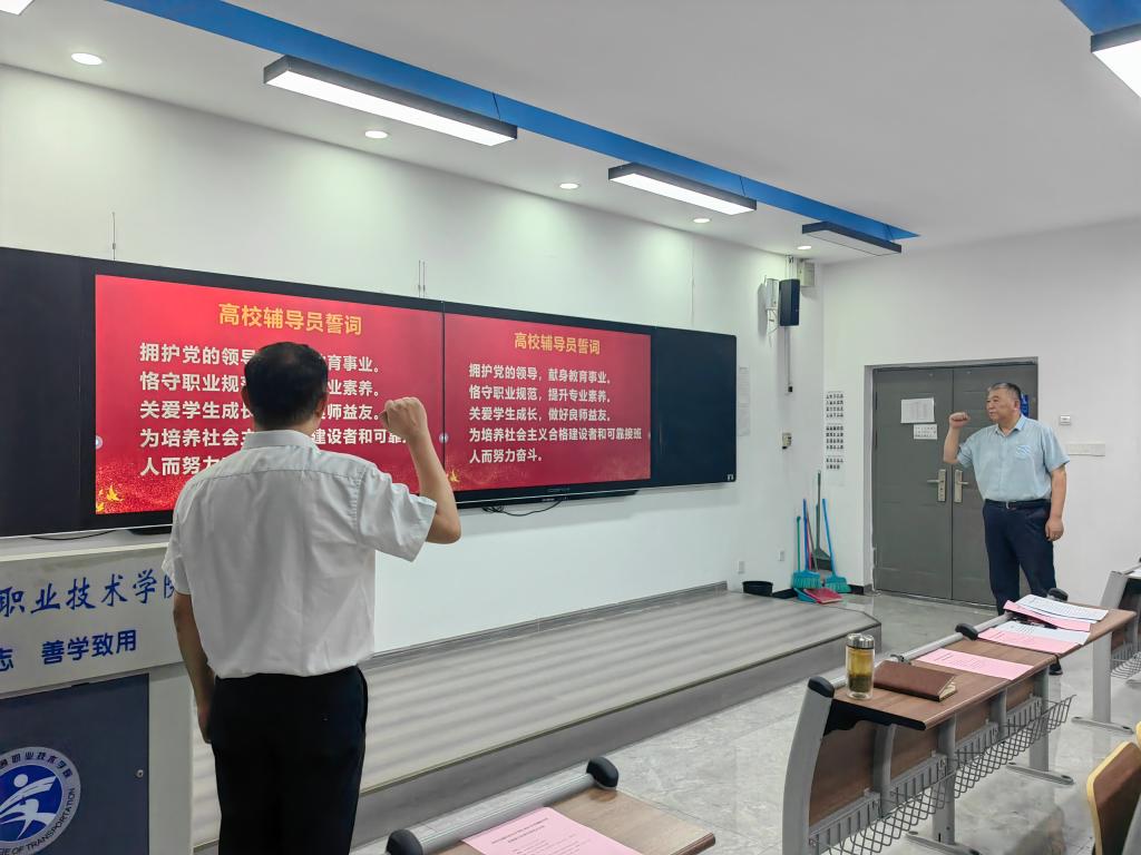 培训中,张震解读《河南交通职业技术学院劳动教育实施方案》,介绍了我校实施劳动实践的背景。相关负责老师分别围绕“劳动实践课简介及规定”“大学生心理危机预防与干预”“民族宗教政策法规宣讲”“大学生征兵入伍政策解读”等主题进行授课,为大家提供多元化的学习平台。全体辅导员共同重温高校辅导员誓词