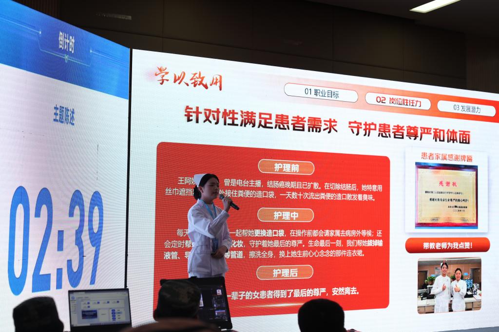 大赛设主题陈述、综合面试、天降“offer”三个环节,主要考察选手的求职实战能力,对照目标职业及岗位要求,个人综合素质和专业能力等方面的契合度,个人发展路径与就业市场需求的适应度。上午8时30分,选手们在检录完毕后,根据抽签顺序在工作人员的带领下依次进入赛场。赛场上,选手主题陈述、评委提问、选手作答、企业心选团为心仪选手举牌、评委打分、宣布选手最终得分……整个比赛井然有序。