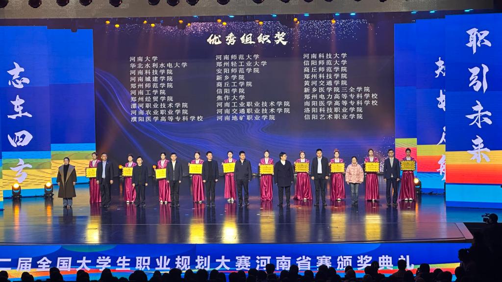 据悉,第二届全国大学生职业规划大赛河南省赛旨在通过比赛展示职业规划教育和就业指导工作取得的成果,引导大学生增强职业规划意识,提前做好就业准备,提高职业生涯规划质量,提升就业竞争力,促进毕业生高质量充分就业。经过一天的精彩展示、激烈比拼,决出了就业赛道金奖、银奖、铜奖。在3月15日上午省教育厅举行的第二届全国大学生职业规划大赛河南省赛颁奖仪式上,我校获优秀组织奖;李方栋、贾永升、许汉等3位同学获得就业赛道金奖、田润清同学获就业赛道铜奖。金奖获奖选手将代表河南省参加全国大学生职业规划大赛,在全国舞台上展示河南职业教育的品牌形象。