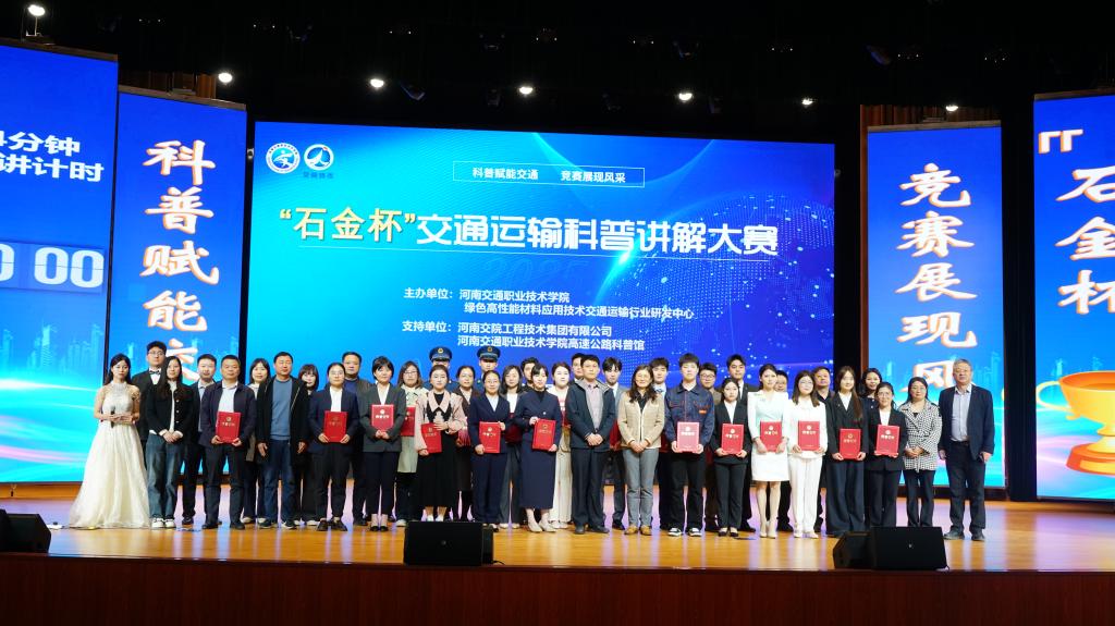4月2日,由河南交通职业技术学院联合绿色高性能材料应用技术交通运输行业研发中心共同主办,河南交院工程技术集团有限公司、河南省高速公路科普馆协办的2025年首届"石金杯"交通运输科普讲解大赛决赛在学校文化艺术中心落下帷幕。河南省交通运输厅科技处调研员方青坡、副校长王玮和各院系负责人共同见证赛事盛况。
