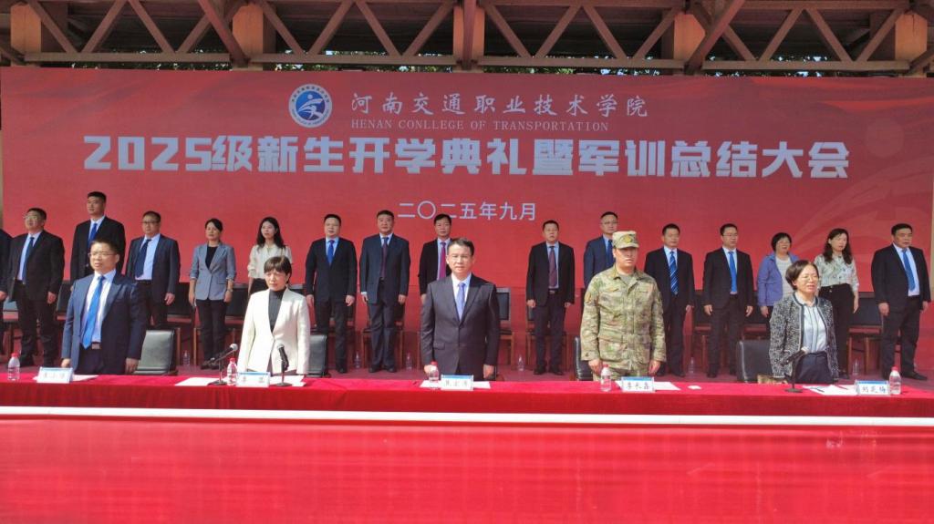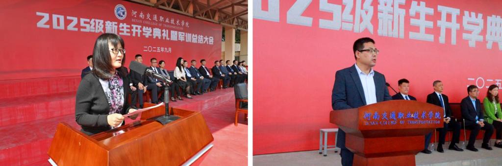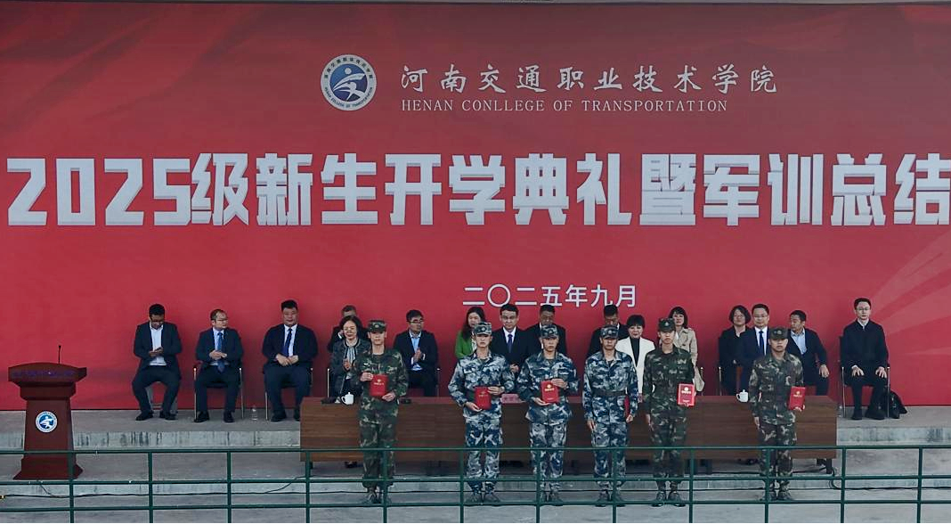 校长焦宏涛代表学校全体师生,向2025级新同学表示热烈欢迎,向军训教官、辅导员、班主任表示衷心感谢。他充分肯定了军训成果,为大家的精彩表演点赞,希望全体新同学尽快融入具有光荣历史、人才辈出的河南交院,带着军训淬炼的拼搏精神和刚毅作风,在学校这片沃土,挺膺担当,厚植家国情怀;崇德修身,筑牢成长之基;勤学苦练,练就过硬本领;学以致用,涵养工匠之魂,将“明德、励志、善学、致用”的校训刻在心间,化为行动。以“明德”为舵,修身正己,涵养品格;以“励志”为帆,志存高远,勇担使命;以“善学”为桨,勤勉不辍,练就本领;以“致用”为舟,知行合一,努力成长为德技并修、全面发展的优秀人才,为加快建设教育强国、交通强国贡献自己的青春力量。