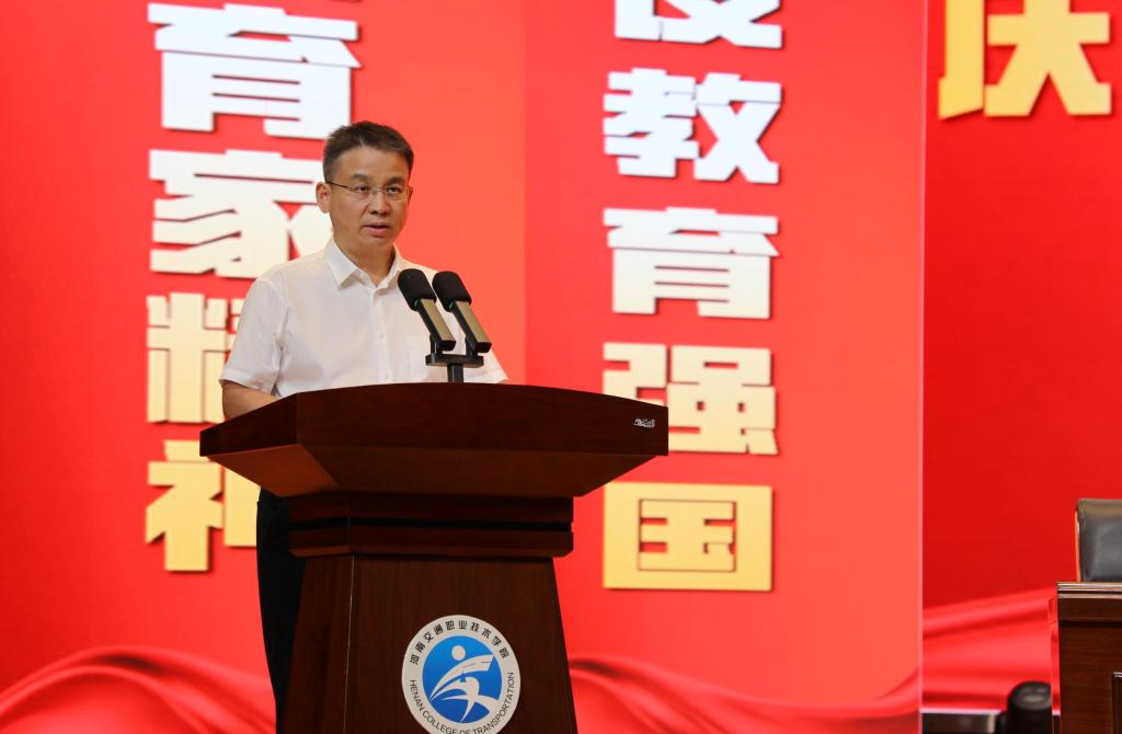 校长焦宏涛指出,一年来,学校在党建工作、师资队伍建设、产教融合、科教融汇、国际合作等方面取得了系列新突破新成绩。这些成绩来之不易,凝结着省教育厅和省交通运输厅的关心指导,凝结着全体师生的智慧和担当。焦宏涛就大力弘扬教育家精神向广大教师提出期望:要厚植爱国情怀、砥砺强国之志、实践报国之行,做学生坚定信念、奉献祖国的引路人;要学为人师,行为世范,以高尚的师德、人格魅力和学识风范教育感染学生;要以教育家为榜样,在育人实践过程中不断涵养育人智慧、提升育人本领;要勤于治学、潜心钻研、不懈求索、勇于创新,成为高素质的专业化教师;要秉承仁爱之心,增强责任感与使命感,以真诚、广博、深沉且持久的大爱情怀滋润学生心田;要自觉推动中华优秀传统文化的传承与创新,将文化自信融入教书育人全过程。他强调,学校正处于抢抓服务国家战略和产业发展重大机遇,争创国家级“新双高”院校、实现高质量发展的关键时期,需要我们进一步坚定信心决心,明确目标任务,以“躬耕”的精神、昂扬的状态、扎实的作风,奋力谱写学校高质量发展新篇章。