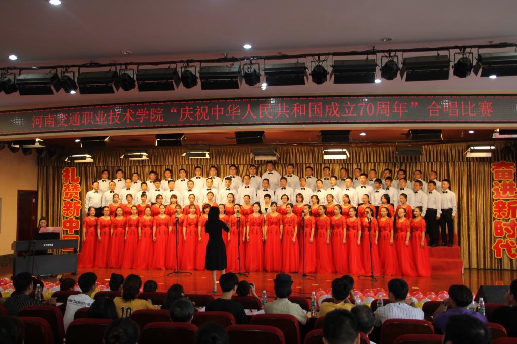 9月25日下午,学院“歌颂祖国 出彩交院”庆祝中华人民共和国成立70周年合唱比赛在新校区图文中心二楼报告厅举行。以分工会为单位组成的11支参赛队伍参加了比赛。学院领导班子和400余名师生共同观看了比赛。