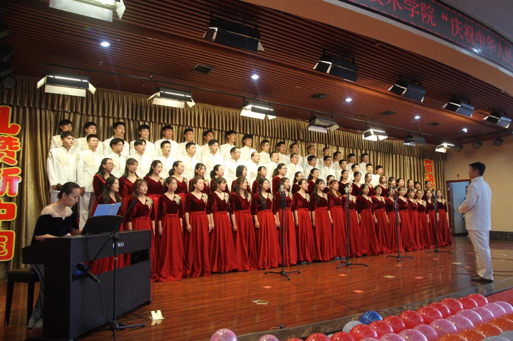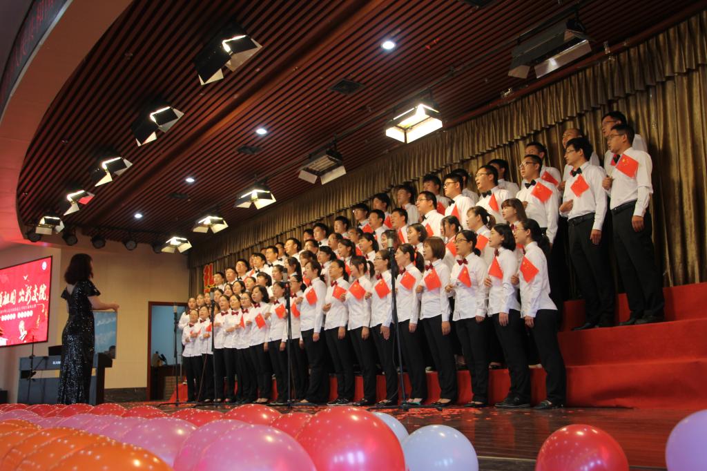 交院人用飞扬的歌声吟唱那段光辉历程,用熟悉的旋律演绎出时代的激越。风云激荡七十年,中华儿女不卑不亢,如铿锵玫瑰,在风雨中绽放。展望未来,时代的接力棒已交接到我们手中,我们必当牢记使命,与囯同梦!