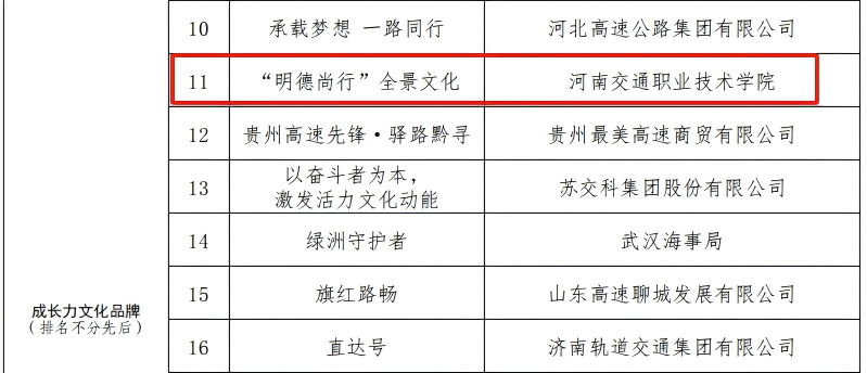 学校“明德尚行”全景文化获全国第六届交通运输“成长力文化品牌”