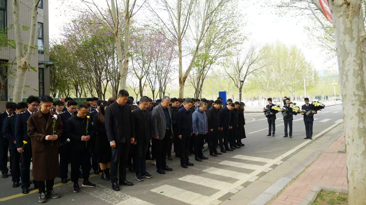 悼念活动中,全体人员在武耀宗烈士雕像前肃立默哀,向烈士致敬。校领导、烈士家属、现场师生代表依次向武耀宗烈士敬献花束。