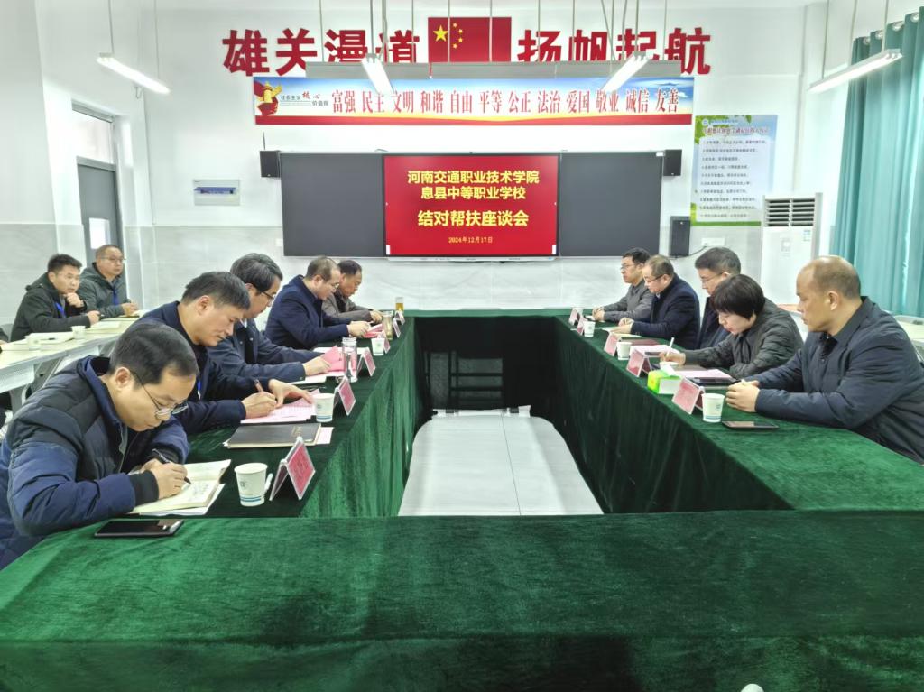 焦宏涛就息县中职人才培养、师资培训、专业建设、实训室建设、招生就业、中高职联合培养等方面与大家深入交流,并就下一步助力息县做好交通发展规划、文化旅游、乡村振兴等方面提出帮扶意见。他表示,学校将以息县发展需求为导向,继续发挥办学优势,加强交流合作,充分整合专业人才、合作企业等方面资源,助推息县经济、教育高质量发展,助力乡村振兴。